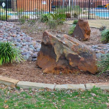 “Enhance your Texas landscape with decorative rock and stone installations that add beauty and durability